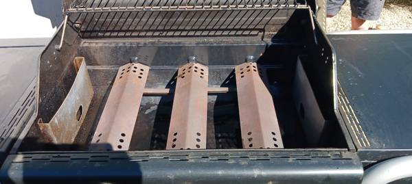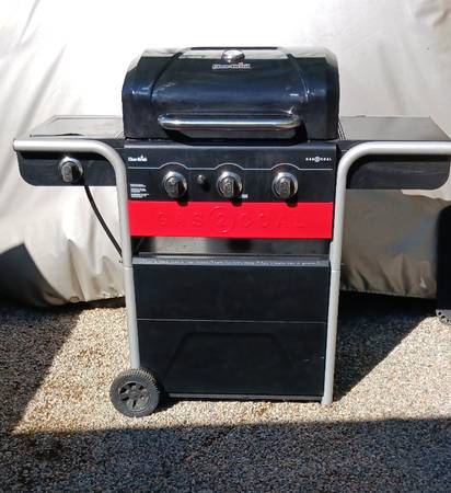 Propane or charcoal, 3 main burners, 1 side burner. Seldom used, approx 7yrs old, always covered, very little rust (superficial, no holes). Includes cover, user guide & cast iron veggie/fish grill plate. No propane tank, no delivery, cash only, located in Borrego Springs (2 hours from San Diego, 1.5 hrs from Palm Springs). If listing is up, it's still available.
