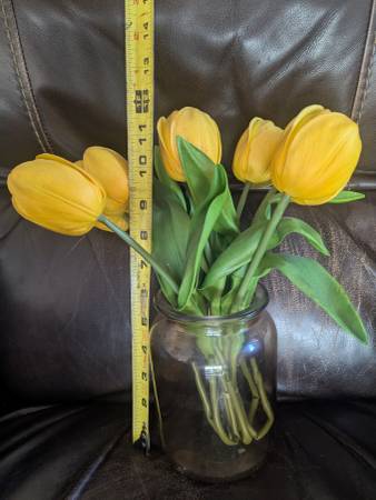 Artificial Yellow Tulips in Glass Vase fake art floral home decor 13" flower