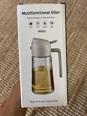 2 in 1 Olive Oil Sprayer & Dispenser - Easy Clean Premium 16oz/470ml Glass Oil Bottle, Food-Grade Oil Sprayer for Cooking, Air Fryer, BBQ, Salad, Baking, and More Kitchen Uses (White) NEW IN BOX