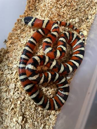 I have a male Arizona mountain kingsnake available. An uncommon kingsnake found in the reptile hobby. He is also 66% het for Applegate special. He is feeding regularly on live pinky mice.