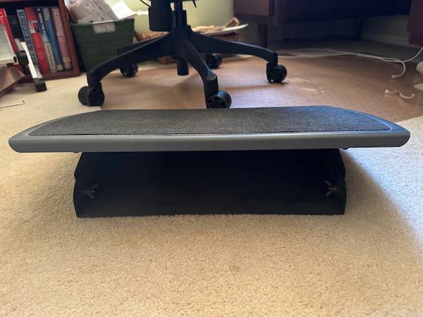 Sturdy, adjustable under desk footrest. Made from heavy duty steel. Ergonomic design to help reduce fatigue, strain, back pain. Height and tilt adjustable. Anti-slip tread to keep feet in place....