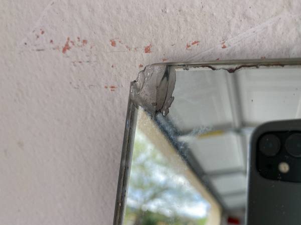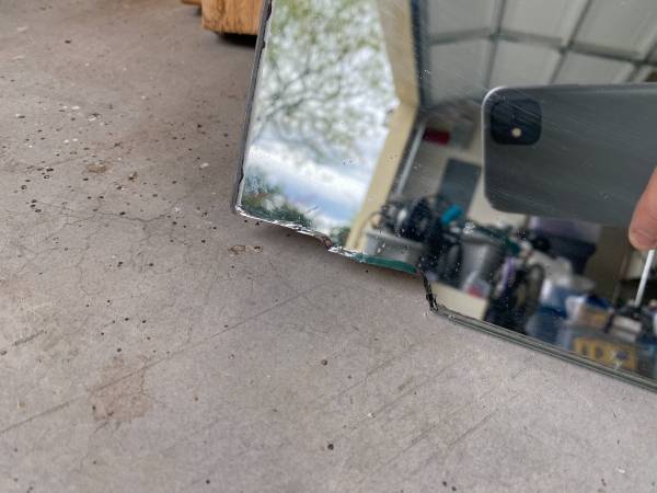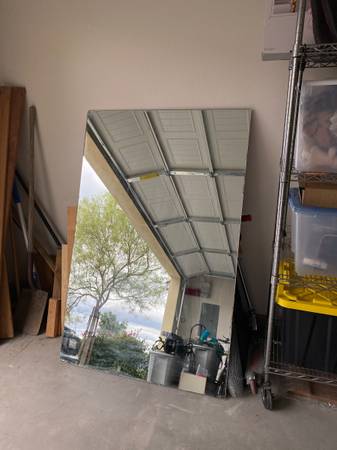 Large Mirror Width 38.5 inches Length 59.5 inches Little damage on edge but great for framing.
