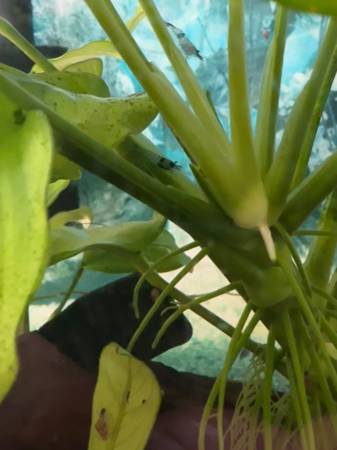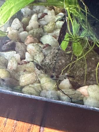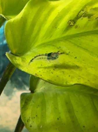 These shrimp are perfect for eating leftover fish food before it spoils in your tank. They come from the same family as red cherry shrimp and are some of the hardiest dwarf shrimp available. They are a mixture with black spots on them. They are not picky eaters and will eat leftover fish food, algae wafers, or blanched vegetables. $2.00 each (minimum $10 purchase)