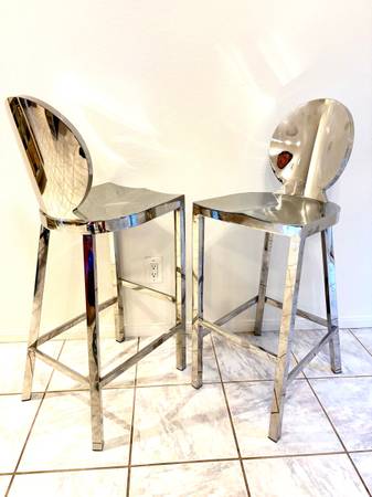 These barstools exude the same bold, high-fashion aesthetic you’d expect from a designer showroom—think CB2, Restoration Hardware, or Philippe Starck–inspired style. Perfectly suited for a chic kitchen island, upscale bar area, or modern loft, they reflect light beautifully and command attention in any setting.