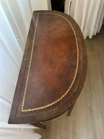 Small Wood Half Moon Table Table as shown in pictures. 28” long and 30” tall
