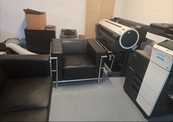 LIKE NEW, AMAZING PRICE, GRAB THEM BOTH. GREAT FOR HOME, OFFICE, STUDENT HOUSING Loveseat: 56wx36dx 26h Chair: 36wx36dx26h