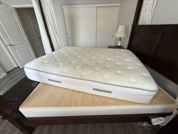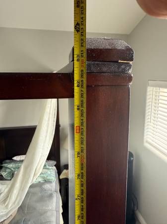 1. Queen - size dark wood four - poster bed with white (for summer) and color (for winter) decorative curtains that add a touch of charm and can provide privacy or a cozy ambiance. And A comfortable queen - size mattress, offering a supportive sleeping surface.