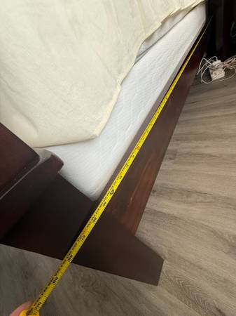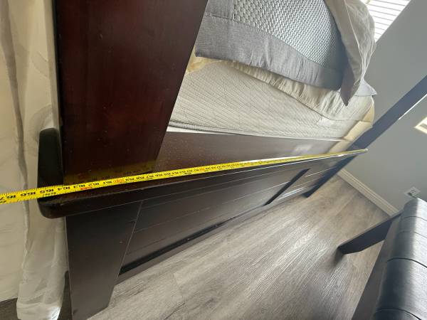 2. Two matching dark wood nightstands, perfect for placing bedside essentials like lamps, books, or alarms