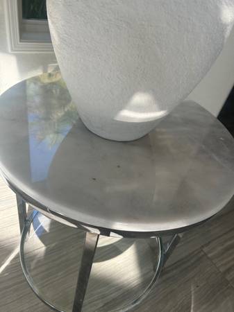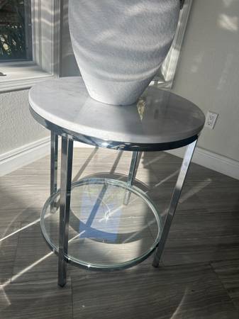 Elegant small side table with a round marble top. Perfect accent piece for a living room, bedroom, or office.