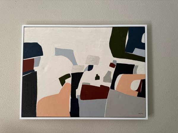 Stephanie Fontaine Mid Century Style Abstract Framed Wall Art Painting. Item is in good used condition, does have a small indentation in canvas. Pick up only in Escondido San Pasqual 92027.