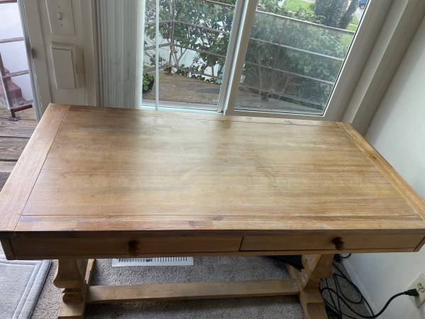 Solid wooden Pier 1 sturdy desk. Classic construction (not a kit). Two drawers for storage.