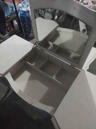 white 3 piece bedroom furniture set: includes dresser, night stand and desk No bed. The set is on the smallish side, very cute, best suited for young girls aged 8 to 20. My daughter used it from middle school through college and it was perfect for those years.
