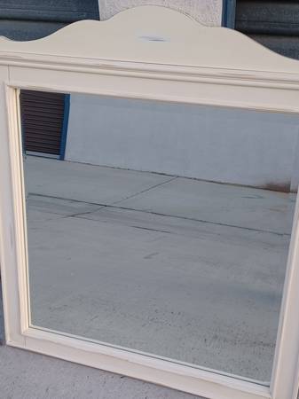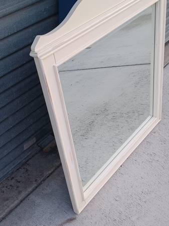 White mirror with pretty look, solid wood frame n beveled glass that inhances overall appearance...
