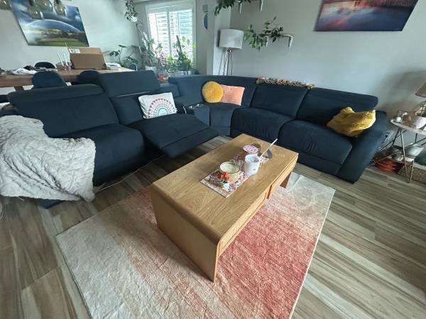 Living spaces couch- paid $4k in May 2022. One recliner stuck open (see pic) but may be repaired or that module removed.