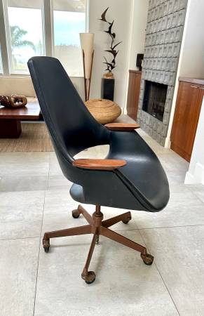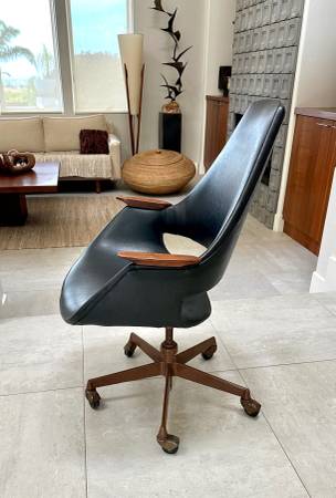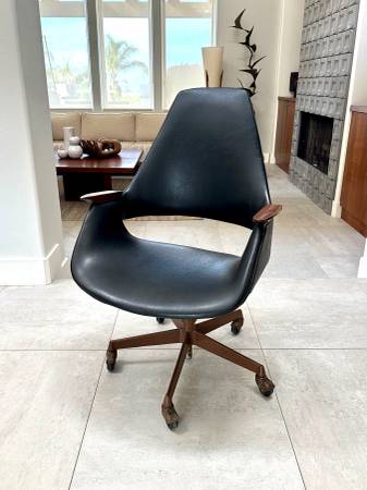 Mid century modern swivel desk chair designed by Arthur Umanoff Good vintage condition with age appropriate signs of wear and use