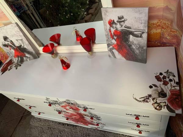 Second dresser with six drawers is big with plenty space for clothes, this piece looks beautiful design looks vintage little cracked design style looks beautiful!
