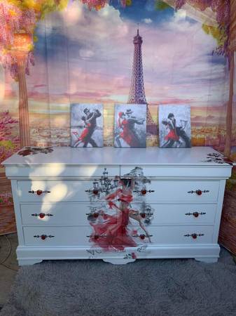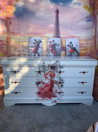 Dresser with eight wooden drawers all drawers are completely clean has been redo are real wood...