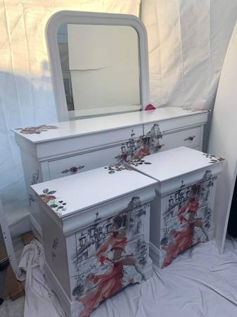 Tango boho style beautiful Queen Size Bedroom set, this set style is unique pieces has been refurbished looks like new a lot of work and effort!