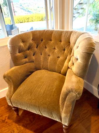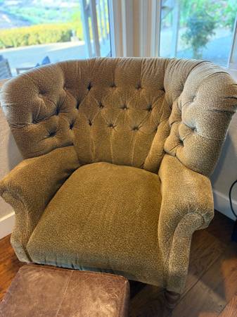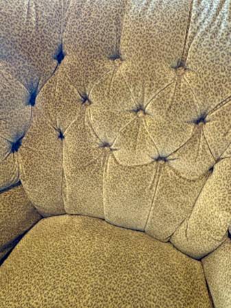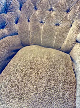 Add a touch of sophistication and whimsy to your space with this beautifully crafted tufted and over-sized accent chair. Upholstered in a plush, textured animal print fabric in a warm neutral tone, it offers both comfort and timeless style. The high back and gently curved arms provide supportive seating, while the deep button-tufting adds a classic, refined look.