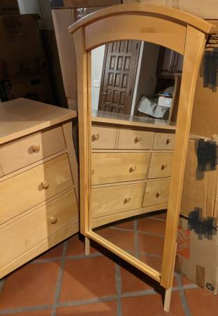 Sturdy Wooden Mirror 27.75" wide x 43.25" tall Excellent, like new condition Posts can be removed to hang on a wall. Posts are installed to mount on a dresser