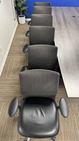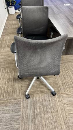 6 steel case chairs - $75 each Heavy duty adjustable chairs. Leather seat with mesh back. Work great, no tears or damages