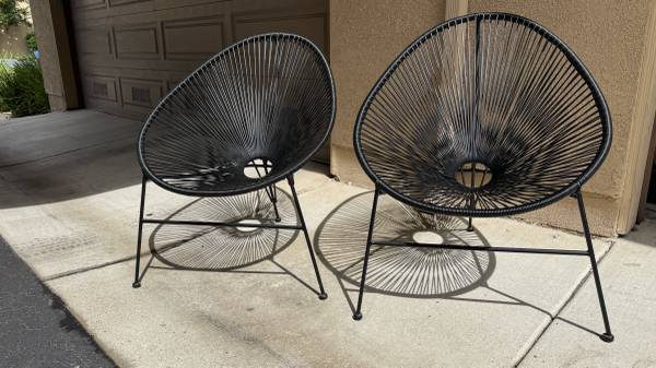 The oval Acapulco styled chairs have high-back design woven with firm yet flexible ropes that you can sink into for optimal comfort.