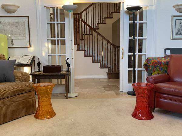 Side Table Hour Glass Shape 12"x18.5" The diamond-pattern fragments the light Hardened Plastic Can also be used for seating Inside or Outside Suitable for Living Room, Bedroom, Child's room,...