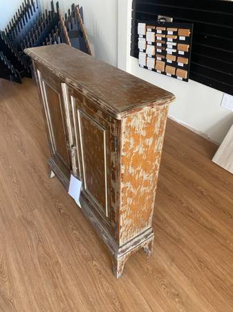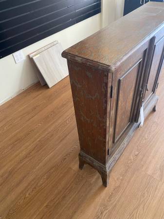 Mahogany Hand Painted Distressed Cabinet. 35wx37hx9.5d