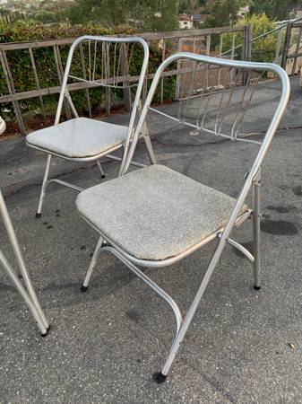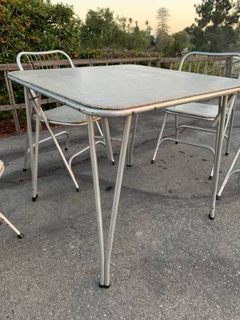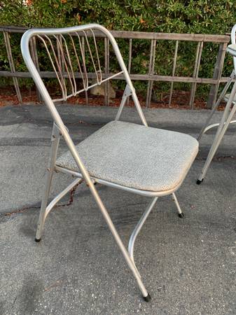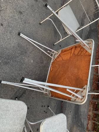 $250 firm Vintage Mid Century Modern Four Folding Dining Chairs by Airlite Aluminum 4 chairs and table Signs of age tarnish and wear. Very presentable vintage condition Would go nicely with an...
