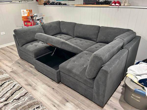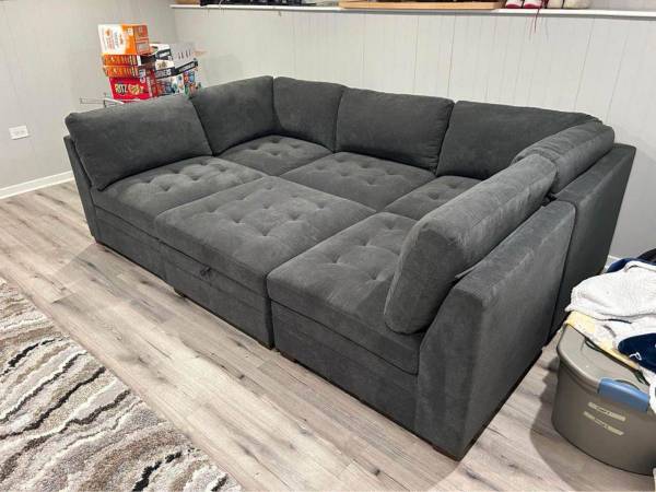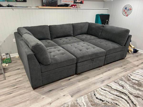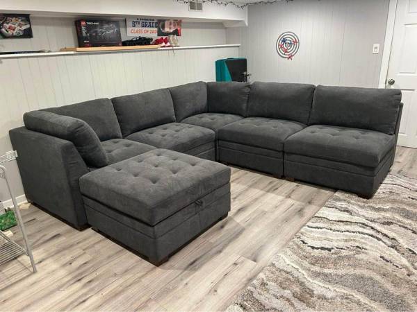 It's a modern sectional couch with an Ottoman. We only used it for 5 months before we got a new set. So we decided to sell this off and we want it gone before Monday. DELIVERY CAN BE DONE . No...
