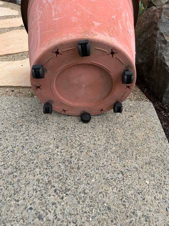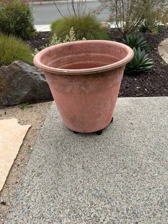 25”W (top) x 15”W (bottom) x 25” H Traditional design and natural color. Durable lightweight plastic. Wheels allow easy movement.