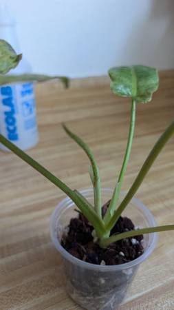 Paraiso Verde philodendron in 3.5 inch clear pot. Fully rooted and sprouting new leaf. Needs warmth and bright light to maintain variegation. Growing medium is coco chips/soil blend to help prevent over watering. FCFS pickup in Escondido near 600 W Mission Ave. I work a lot so please bear with me if I can't respond to messages right away. I will reply as soon as I get a chance. Thanks!