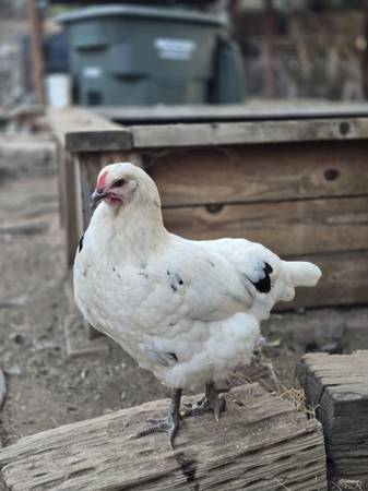 Black copper maran & leghorn mix. Shes super chill 6 months old will be laying soon $40 price is firm **mystery egg color