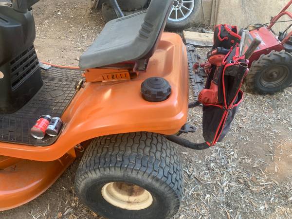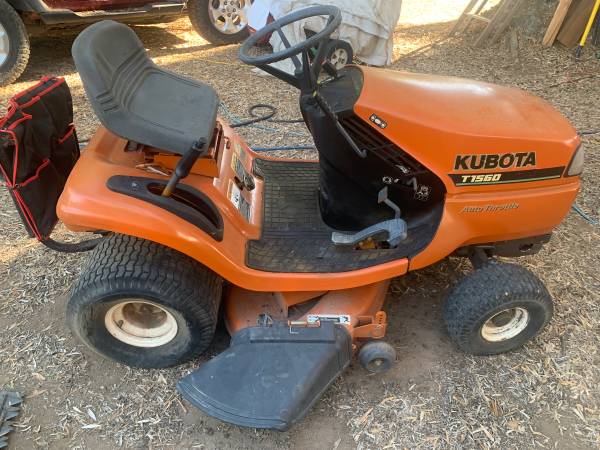 Nice Kubota model 1560 lawn tractor. New drive belt. Ready to cut. Comes with tool pouch loaded — cordless chainsaw, hand cutters, cordless drill, scissors, hammer. $700 OBO