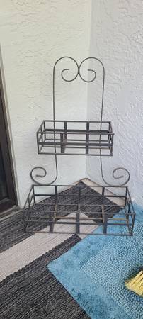 Cast iron plant basket Height: 29" Width: 19.5" Depth: 8.5" Upper basket internal: 11.5" x 6.5" x 3.5" Lower basket internal: 19" x 8" x 5" Pick up in Rancho Bernardo