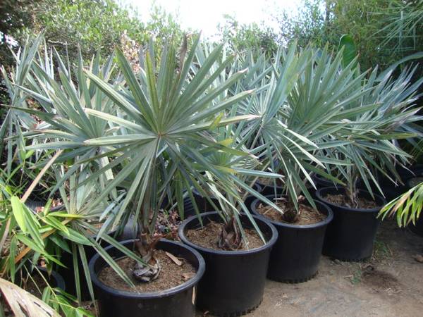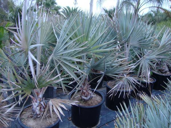 Very impressive silver-blue Bismarckia palms. Also have them in the green form.