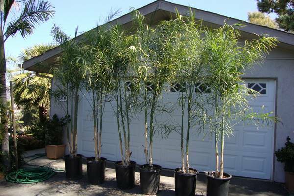 Over 20 species of bamboo palms, Chamaedoreas, that grow very well here in southern CA. Some with thin trunks (~1/2") to fatter trunks (2"+). Very green ringed trunks looking similar to bamboo. Native to central America (Mexico, Costarica, Guatemala...)