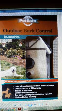 Put a stop to nuisance barking PetSafe Outdoor Bark Control. It looks like a standard birdhouse, but whenever a dog barks it emits an ultrasonic squeal that's inaudible to humans. The PetSafe Outdoor Bark Control is weatherproof and has a bark-detection range of 50 feet.