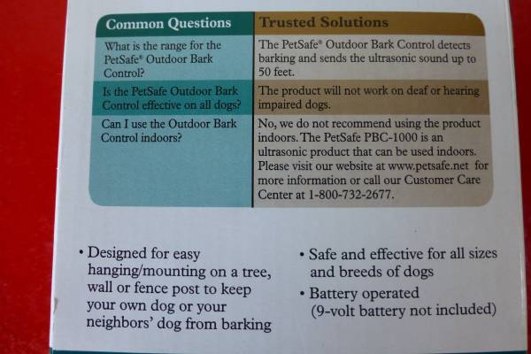 Outdoor Bark Control Device made by PetSafe. Box was opened, product wasn't used.