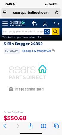 Part #24892 Triple bin bagger In good functional shape. This came with a mower we purchased. I guess this retails for $550 online plus tax and shipping. Asking 200 or best offer/trade.
