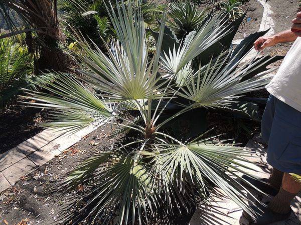 Chamaerops humilis var. cerifera (blue Mediterranean fan palm).