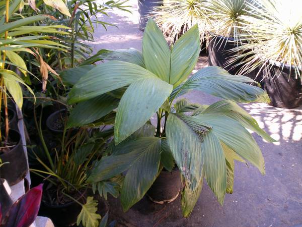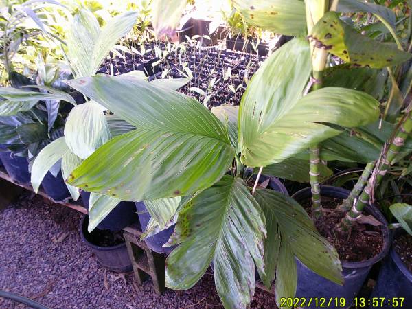 A unique looking bi-fid Bamboo palm (Chamaedorea ernesti augusti) that should be in everybody's palm collection. A great under story palm, growing slowly and not getting tall.