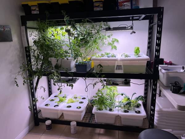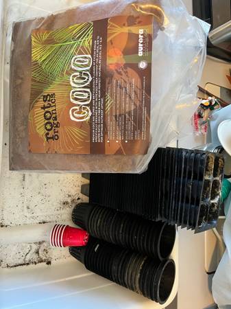 There’s close to $2,000. worth of stuff included. theres 8 expensive thick high density tubs with lids drilled out for grow cups (paid $40 each)( High density polyethylene. USDA approved. Size: 25" x 15-1/2" x 8-3/4".), 7 grow lights ($100 each), 3 are brand new in box (all work) they can be daisy chained and intensity adjusted (i had them set to a timer, makes it easy) , 4 bags of each of the grow mixes, 3 of each are brand new, one of each was opened and used, but very little is gone. 2 brand new bricks of cococore for grow cups and seeds, one opened partly used bag. a lot of grow cups and seed starter trays. I had it set up on a heavy duty costco rack. it held 8 tubs and lights hooked to rack easy. We grew kale, tomatoes, peppers, strawberries, lettuce, herbs and they all were great and grew inside so no sharing with pests or rodents!