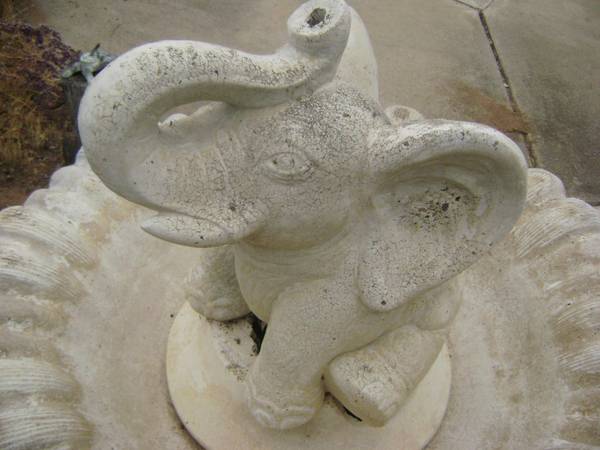 Elephant water fountain. 44" wide and 44" tall Comes apart in 4 pieces Hand truck available to move. Must take all. Must pick up in Valley Center. No delivery. CASH ONLY Its very heavy. Pump has not...