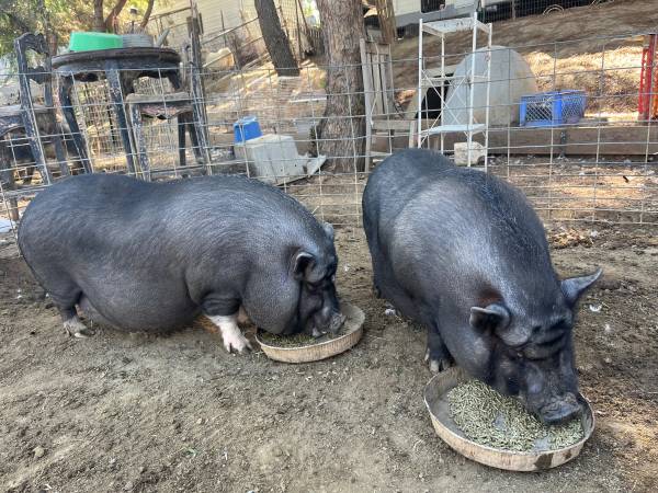 2 Female Pot Belly Pigs! Friendly! They Love their belly's rubbed and fall over for you to pet their bellies more!