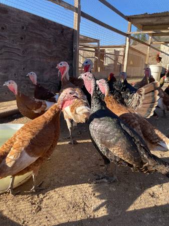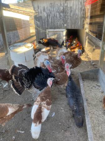 Mix of heritage breed turkeys Born last spring Located Valley Center Hens and Toms available