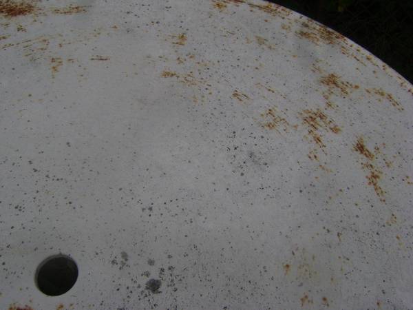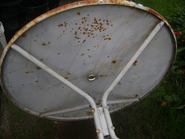 1970's Metal patio table only. Approx 42" diameter x 29" high. No chairs , No umbrella. , No delivery. Contact by Craigslist Emails only. It is available.