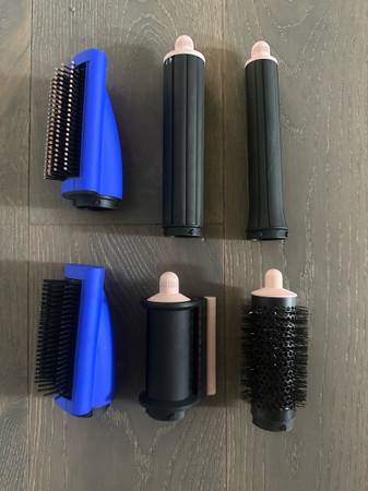 Includes coanda smoothing dryer, 1.2in and 1.6in long barrels, round volumizing brush, soft smoothing brush and firm smoothing brush attachments as well as storage case. Barely used.