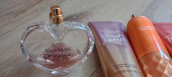 $40 for all the Victoria's secret perfume lotions are full, the bed and bath perfume mist is 3/4 full and the Vera Wang princess perfume has about an ounce or two in it see pics the whole lot for $40