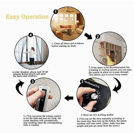 Intelligent Timing Control: This commercial ozone generator machine comes with humidity display and 0-120 minute timer function. You can customize the required operating time for up to 120 minutes, and use the "HOLD" mode to keep it working continuously. The humidity reminder will also prompt you to maintain dry indoor for better odor removal effectiveness.